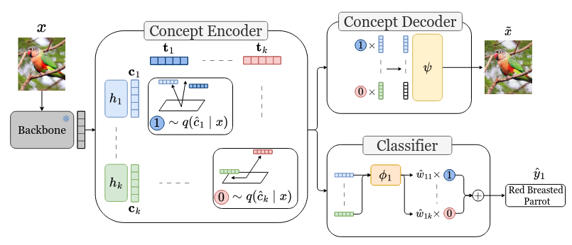 “To increase the trustworthiness of deep neural networks, it is critical to improve the understanding of how they make decisions. This paper introduces a novel unsupervised concept-based model for image classification, named Learnable Concept-Based Model (LCBM) which models concepts as random variables within a Bernoulli latent space. Unlike traditional methods that either require extensive human supervision or suffer from limited scalability, our approach employs a reduced number of concepts without sacrificing performance.”