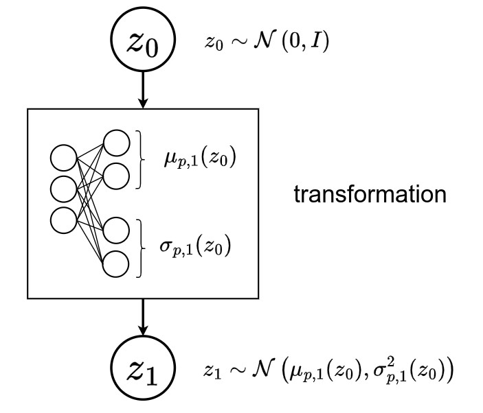 ➔ \(q(z_0 \mid x) = \mathcal{N}( \mu_{q,0}(x), \sigma^2_{q,0}(x) )\)