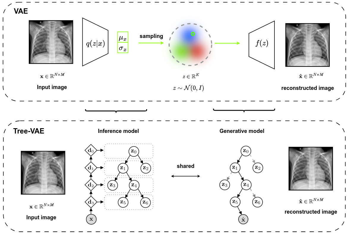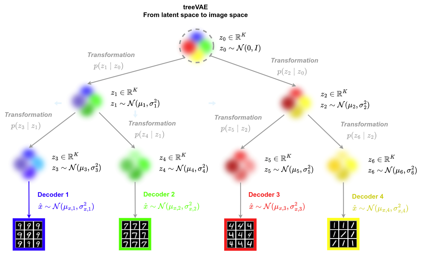 - In treeVAE, multiple decoders are used to reconstruct the training images per group