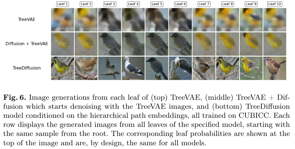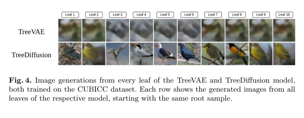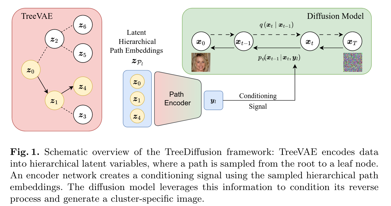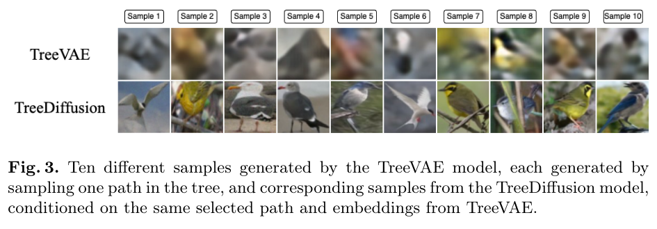 - TreeVAE provides effective hierarchical clustering representations, while the diffusion model enables high-quality image generation.